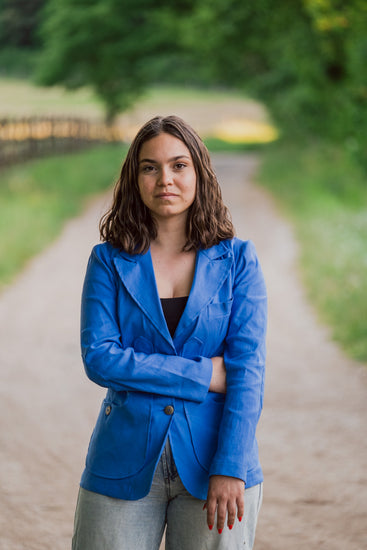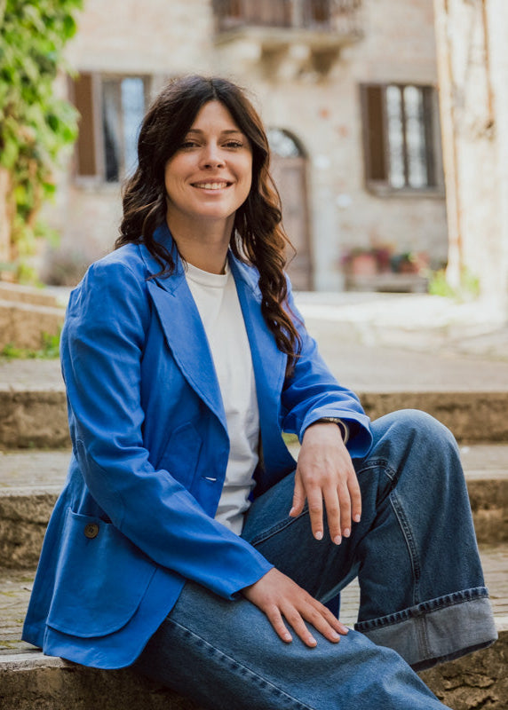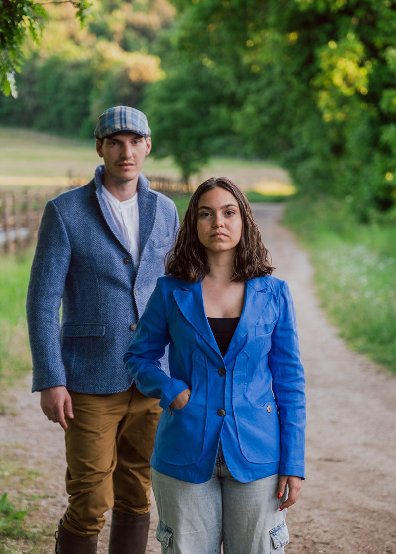 Jacket with a modern shape but which recalls ancient traditions with the typical Maremma pocket, screwed on the sides and with a slit at the back.