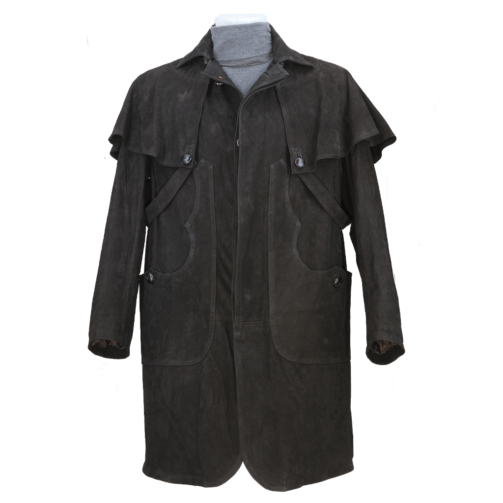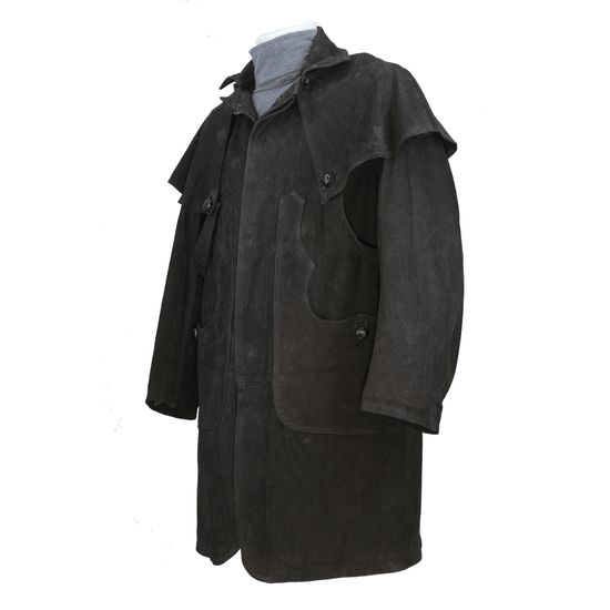 Calfskin cape featuring distinctive front pockets, which give it a distinct Maremma style. Inspired by the old butteri cloaks, which were used to protect the herdsmen from the elements.