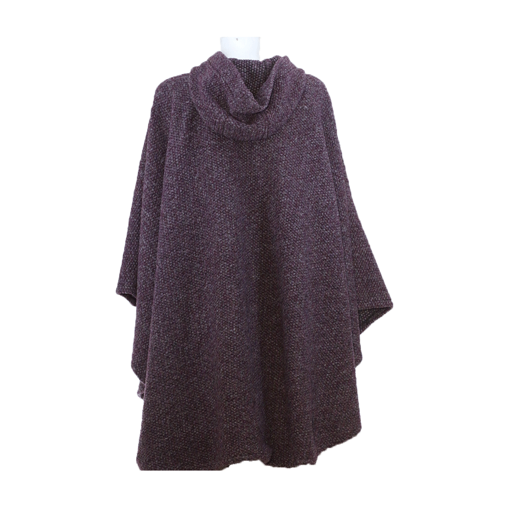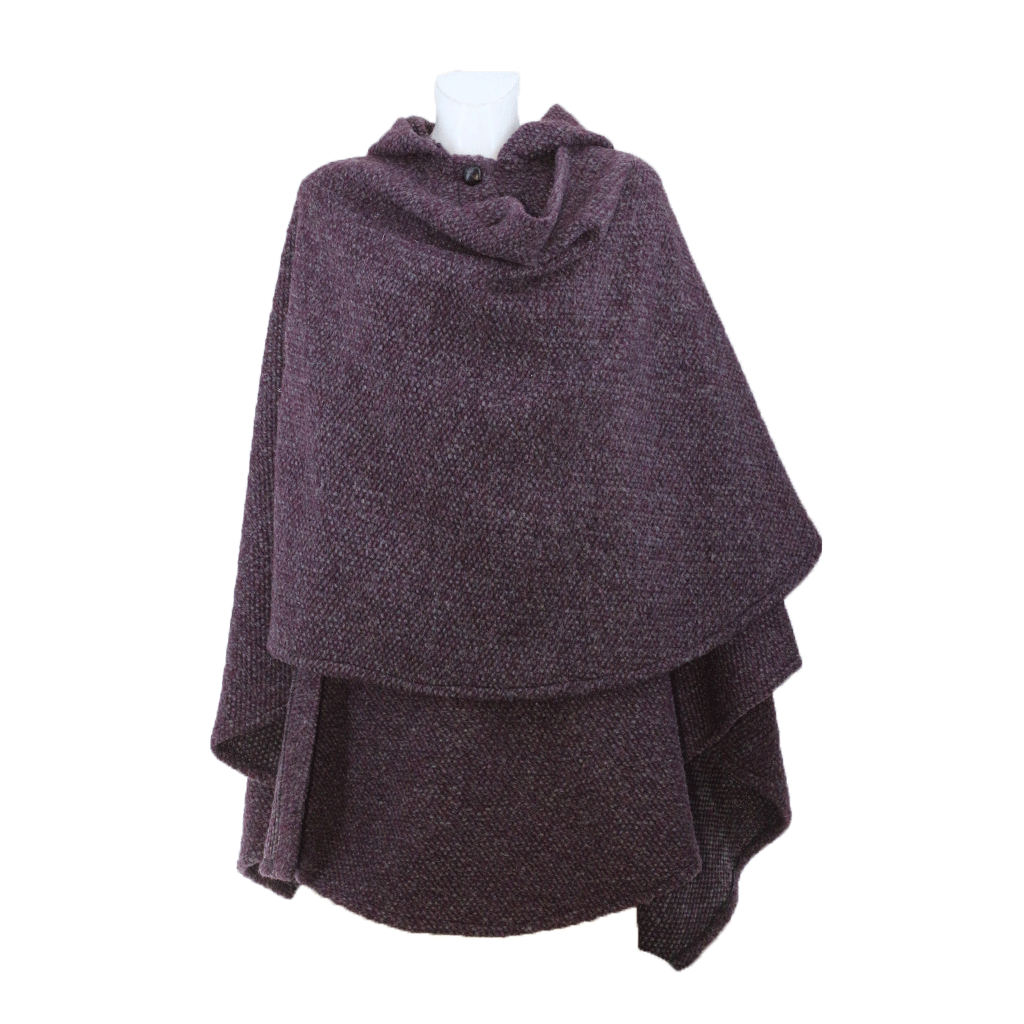Unlined cape made of pure wool (100% wool), purple melange color.
